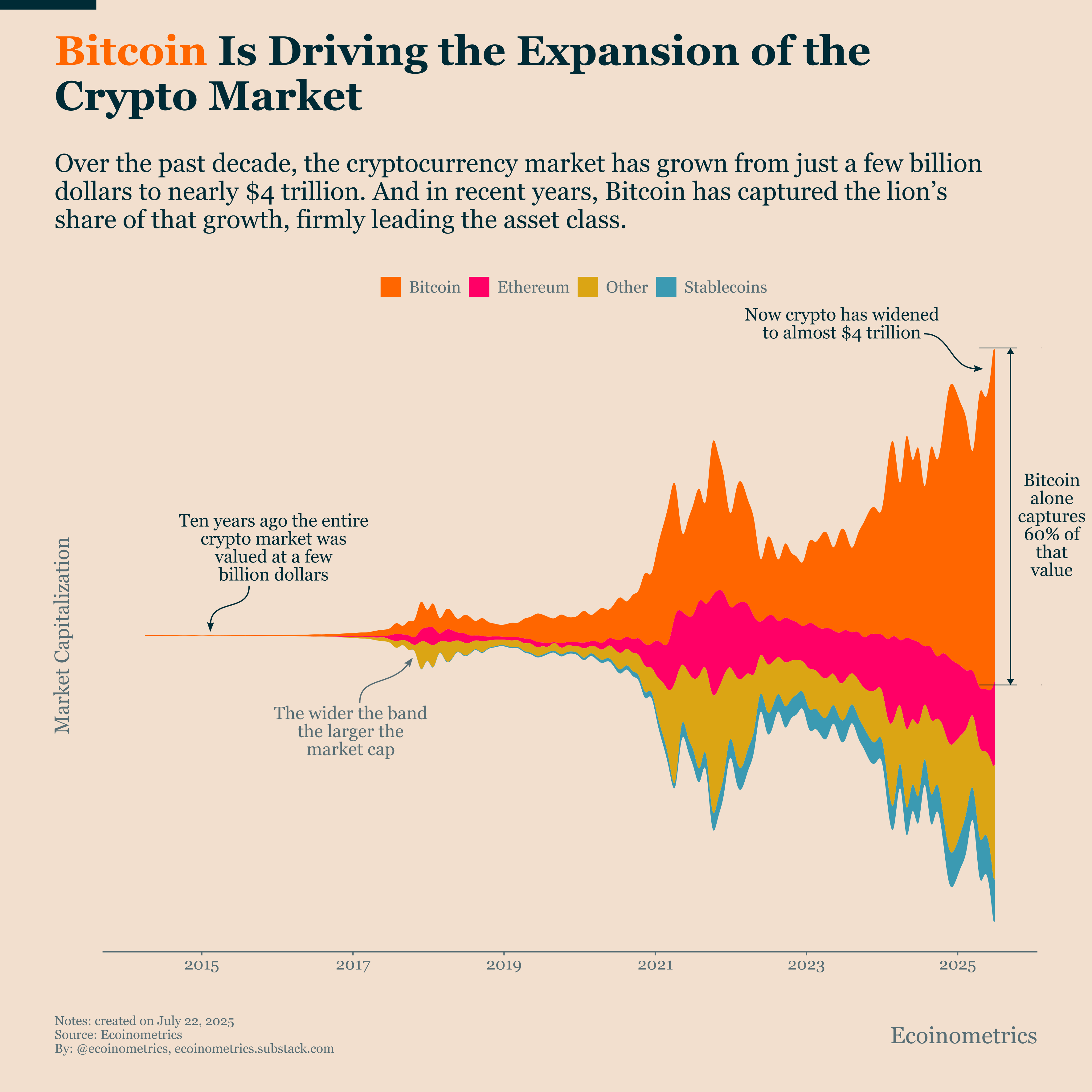 Looking back over the past decade, it’s remarkable how far crypto has come, expanding from just a few billion dollars in market value to nearly $4 trillion today.